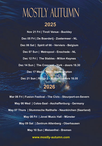 We are delighted to announce a Mostly Autumn tour in Germany for May next year. So happy to be hopefully seeing our friends in Germany and making some new ones.
